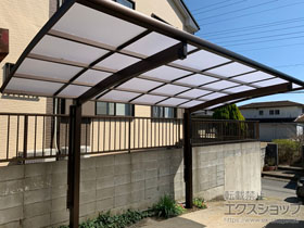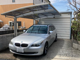 この度は弊社でプレシオスポート アール型 1台用の施工のご依頼を頂きまして、誠に有り難うございます。落ち着いたお色味でご自宅や周囲の景観に調和する、グレースブラウンのフレームのカーポートが、敷地内に自然に収まりました事。嬉しく存じます。屋根が出来た事により、車の汚れ軽減をご実感頂けているとの事で、安堵しております。ポリカーボネート(スカイブルー)の屋根は紫外線透過率ほぼ0%のため、色あせ等の軽減にも効果を期待できるのではないかと存じます。これからもお客様の快適な暮らしの為に、商品知識の向上に努めて参りますので、今後もエクスショップをご愛顧頂きますよう、宜しくお願い申し上げます。