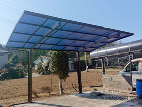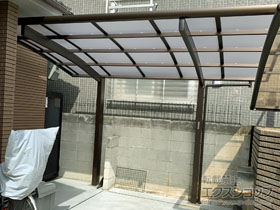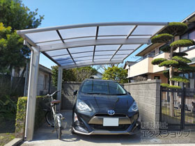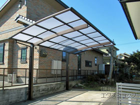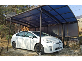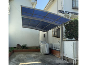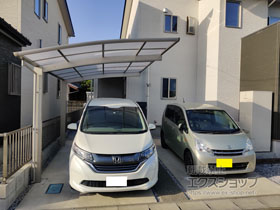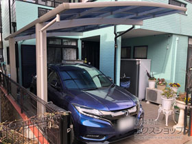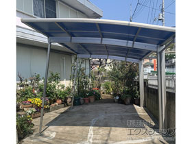 この度は弊社でプレシオスポート アール型 1台用の施工のご依頼を頂きまして、誠に有り難うございます。落ち着いたお色味でご自宅や周囲の景観に調和する、グレースブラウンのフレームのカーポートが、敷地内に自然に収まりました事。嬉しく存じます。屋根が出来た事により、車の汚れ軽減をご実感頂けているとの事で、安堵しております。ポリカーボネート(スカイブルー)の屋根は紫外線透過率ほぼ0%のため、色あせ等の軽減にも効果を期待できるのではないかと存じます。これからもお客様の快適な暮らしの為に、商品知識の向上に努めて参りますので、今後もエクスショップをご愛顧頂きますよう、宜しくお願い申し上げます。