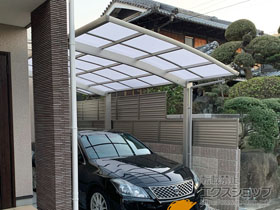 アリュース 600タイプ 縦連棟セット(4台用)とプレシオスポート アール型の施工をご依頼頂きまして、誠に有り難うございます。無駄のないすっきりしたデザインですので、屋根の下も広々とご使用頂けるものと存じます。熱線遮断ポリカーボネートの屋根材は、雨だけでなく、有害な紫外線や熱も遮断するため、1年を通して快適にご使用頂けるものと存じます。特に、お車4台分のスペースは広々として、様々な用途にご活用頂けますね。これからも、エクステリアの施工を通じて、豊かな暮らしのお手伝いをして参ります。また機会がございましたら、是非エクスショップにご用命頂きますよう宜しくお願い致します。