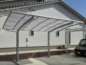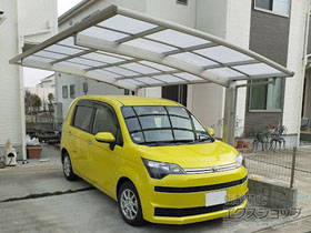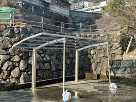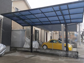 アリュース 600タイプ 縦連棟セット(4台用)とプレシオスポート アール型の施工をご依頼頂きまして、誠に有り難うございます。無駄のないすっきりしたデザインですので、屋根の下も広々とご使用頂けるものと存じます。熱線遮断ポリカーボネートの屋根材は、雨だけでなく、有害な紫外線や熱も遮断するため、1年を通して快適にご使用頂けるものと存じます。特に、お車4台分のスペースは広々として、様々な用途にご活用頂けますね。これからも、エクステリアの施工を通じて、豊かな暮らしのお手伝いをして参ります。また機会がございましたら、是非エクスショップにご用命頂きますよう宜しくお願い致します。