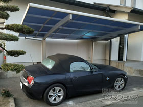 プレシオスポート アール型 1台用が綺麗に納まりましたこと、スタッフ一同大変嬉しく存じます。透明感のあるポリカーボネート(スカイブルー)の屋根が、ノーブルステンのフレームと良くマッチして、洗練された雰囲気のカーポートが完成しましたね。弊社提携施工店の施工にもご満足頂けましたようで、何よりも嬉しく存じます。これからも、このようなお褒めのお言葉を励みに、さらにご満足頂けるエクスショップを目指して、努力して参りたいと存じます。また機会がございましたら、是非弊社にご用命頂きますよう宜しくお願い致します。