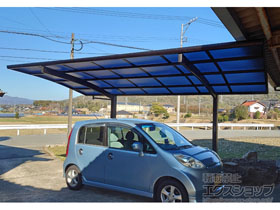 この度は弊社でプレシオスポート アール型 1台用の施工のご依頼を頂きまして、誠に有り難うございます。落ち着いたお色味でご自宅や周囲の景観に調和する、グレースブラウンのフレームのカーポートが、敷地内に自然に収まりました事。嬉しく存じます。屋根が出来た事により、車の汚れ軽減をご実感頂けているとの事で、安堵しております。ポリカーボネート(スカイブルー)の屋根は紫外線透過率ほぼ0%のため、色あせ等の軽減にも効果を期待できるのではないかと存じます。これからもお客様の快適な暮らしの為に、商品知識の向上に努めて参りますので、今後もエクスショップをご愛顧頂きますよう、宜しくお願い申し上げます。