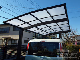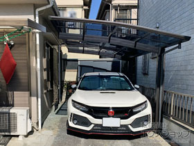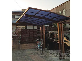 この度は弊社でプレシオスポート アール型 1台用の施工のご依頼を頂きまして、誠に有り難うございます。落ち着いたお色味でご自宅や周囲の景観に調和する、グレースブラウンのフレームのカーポートが、敷地内に自然に収まりました事。嬉しく存じます。屋根が出来た事により、車の汚れ軽減をご実感頂けているとの事で、安堵しております。ポリカーボネート(スカイブルー)の屋根は紫外線透過率ほぼ0%のため、色あせ等の軽減にも効果を期待できるのではないかと存じます。これからもお客様の快適な暮らしの為に、商品知識の向上に努めて参りますので、今後もエクスショップをご愛顧頂きますよう、宜しくお願い申し上げます。