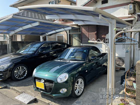 アリュース 600タイプ 縦連棟セット(4台用)とプレシオスポート アール型の施工をご依頼頂きまして、誠に有り難うございます。無駄のないすっきりしたデザインですので、屋根の下も広々とご使用頂けるものと存じます。熱線遮断ポリカーボネートの屋根材は、雨だけでなく、有害な紫外線や熱も遮断するため、1年を通して快適にご使用頂けるものと存じます。特に、お車4台分のスペースは広々として、様々な用途にご活用頂けますね。これからも、エクステリアの施工を通じて、豊かな暮らしのお手伝いをして参ります。また機会がございましたら、是非エクスショップにご用命頂きますよう宜しくお願い致します。