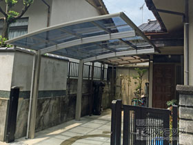 この度は、プレシオスポート アール型の施工をご依頼頂きまして、誠に有り難うございます。柱をブロック塀の内側に設置したことで、駐車スペースを広く確保することができましたね。夏場は車内温度の上昇を抑える熱線遮断ポリカーボネート(スカイブルー・マット調)の屋根は、冬場の霜対策にもご期待頂けます。雨の日の乗り降りも快適になり、1年を通して、カーポートの効果を感じて頂けるものと存じます。これからもお客様に安心と満足をお届け出来るよう、日々精進して参ります。また、機会がございましたら、是非弊社にご用命くださいますよう、宜しくお願い致します。