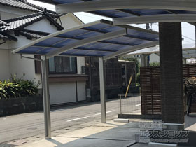 アリュース 600タイプ 縦連棟セット(4台用)とプレシオスポート アール型の施工をご依頼頂きまして、誠に有り難うございます。無駄のないすっきりしたデザインですので、屋根の下も広々とご使用頂けるものと存じます。熱線遮断ポリカーボネートの屋根材は、雨だけでなく、有害な紫外線や熱も遮断するため、1年を通して快適にご使用頂けるものと存じます。特に、お車4台分のスペースは広々として、様々な用途にご活用頂けますね。これからも、エクステリアの施工を通じて、豊かな暮らしのお手伝いをして参ります。また機会がございましたら、是非エクスショップにご用命頂きますよう宜しくお願い致します。