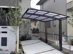 この度は弊社でプレシオスポート アール型 1台用の施工のご依頼を頂きまして、誠に有り難うございます。落ち着いたお色味でご自宅や周囲の景観に調和する、グレースブラウンのフレームのカーポートが、敷地内に自然に収まりました事。嬉しく存じます。屋根が出来た事により、車の汚れ軽減をご実感頂けているとの事で、安堵しております。ポリカーボネート(スカイブルー)の屋根は紫外線透過率ほぼ0%のため、色あせ等の軽減にも効果を期待できるのではないかと存じます。これからもお客様の快適な暮らしの為に、商品知識の向上に努めて参りますので、今後もエクスショップをご愛顧頂きますよう、宜しくお願い申し上げます。