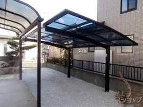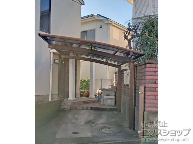 この度は弊社でプレシオスポート アール型 1台用の施工のご依頼を頂きまして、誠に有り難うございます。落ち着いたお色味でご自宅や周囲の景観に調和する、グレースブラウンのフレームのカーポートが、敷地内に自然に収まりました事。嬉しく存じます。屋根が出来た事により、車の汚れ軽減をご実感頂けているとの事で、安堵しております。ポリカーボネート(スカイブルー)の屋根は紫外線透過率ほぼ0%のため、色あせ等の軽減にも効果を期待できるのではないかと存じます。これからもお客様の快適な暮らしの為に、商品知識の向上に努めて参りますので、今後もエクスショップをご愛顧頂きますよう、宜しくお願い申し上げます。