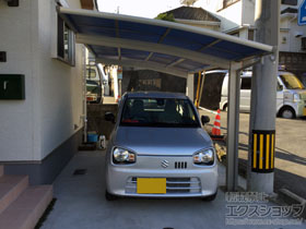 プレシオスポート アール型 1台用が綺麗に納まりましたこと、スタッフ一同大変嬉しく存じます。透明感のあるポリカーボネート(スカイブルー)の屋根が、ノーブルステンのフレームと良くマッチして、洗練された雰囲気のカーポートが完成しましたね。弊社提携施工店の施工にもご満足頂けましたようで、何よりも嬉しく存じます。これからも、このようなお褒めのお言葉を励みに、さらにご満足頂けるエクスショップを目指して、努力して参りたいと存じます。また機会がございましたら、是非弊社にご用命頂きますよう宜しくお願い致します。