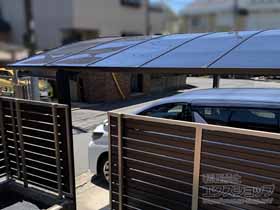プレシオスポート アール型 2台用が綺麗に納まりましたこと、スタッフ一同大変嬉しく存じます。玄関前に、雨に濡れないスペースが完成しただけでなく、有害な紫外線もほぼ100%カットされるため、1年を通して様々な用途にご活用頂けるものと存じます。また、室内への直射日光の差し込みも軽減されますね。これからも、このようなお喜びのお言葉を励みに、さらにご満足頂けるエクスショップを目指して、努力して参りたいと存じます。また機会がございましたら、是非弊社にご用命頂きますよう宜しくお願い致します。