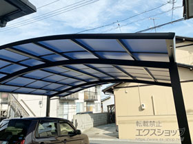 プレシオスポート アール型 2台用の施工をご依頼頂きまして、誠に有り難うございます。アーチ状の屋根が、お車を優しく包み込むようなお仕上がりですね。熱線遮断ポリカーボネート(スカイブルー・マット調)の遮熱性、遮光性にご満足頂いておりますこと、私どもも大変嬉しく存じます。雨天時の乗り降りの煩わしさも、軽減されるものと存じます。これからも、お客様のご期待を裏切らないよう精進して参ります。また機会がございましたら、是非エクスショップをご利用頂きますよう、宜しくお願い致します。