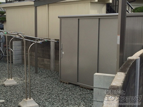 エスモ 一般型の施工をご依頼頂きまして、誠に有り難うございます。圧迫感の無いお色ですが、機能的で、収納力のある物置でございますので、お荷物の整理に重宝して頂けるものと存じます。この度の施工によりお客様の生活がより便利で豊かなものになりますことを、心より祈っております。これからも格安のお値段でご要望に沿った施工が出来ますよう、エクスショップは日々精進して参ります。また機会がございましたら、是非弊社にご用命くださいますよう、宜しくお願い致します。