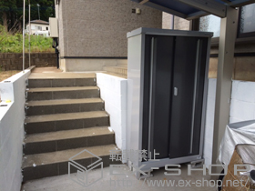 この度は、物置の施工をエクスショップにご用命頂きまして、誠に有り難うございます。経験豊かな施工担当者ならではのご提案により、お客様にとりまして最適な場所に設置することが出来たものと存じます。全面棚タイプですので、スペースを有効に使って効率よく収納して頂けます。雨水や埃の侵入も防ぎ、大切なものも安心して保管出来ますね。これからも、快適なお住まいづくりのお手伝いが出来ますよう、日々精進して参ります。また機会がございましたら是非弊社にご用命下さいますよう宜しくお願い致します。