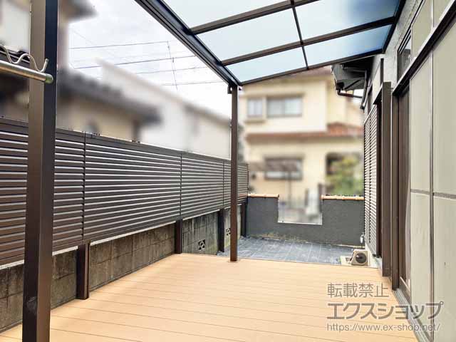 この度は弊社でヴェクターテラス F型 テラスタイプ 三連棟の施工のご依頼を頂きまして、誠に有り難うございます。奥行きのある三連棟のテラス屋根が、ご自宅横のスペースをすっぽりと覆い、テラス下の明るさはそのままに、綺麗に収まりました事、喜ばしく存じます。敷地いっぱいに建てられた事で柱が干渉せず、スペースを有効に使って頂けますね。お洗濯物干しや駐輪、お荷物の仮置きなど、天候に左右されずに快適にお使い頂ける環境になりましたら幸いでございます。これからも業界最安値を目指し、企業努力を重ねて参りますので、また機会がございましたら、是非エクスショップにご用命頂きますよう、宜しくお願い申し上げます。