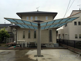 レイナポートグラン Y合掌タイプの施工を2基、ご依頼頂きまして、誠に有り難うございます。合計4台のお車を、ゆったりと駐車して頂けます。Y合掌タイプのため、敷地の真ん中に柱がこず、開放感がございますね。パッと目を引くお仕上がりは、ご近所でも評判なのではないでしょうか。今後も、常に、お客様のご希望にかなった完成を目指し、努力して参ります。また機会がございましたら、是非エクスショップにご用命頂きますよう宜しくお願い致します。
