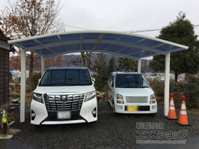 この度はレイナツインポートグランの施工をご依頼頂きまして、誠に有り難うございます。優しいアーチ型の屋根により圧迫感のないお仕上がりでございますね。お車の汚れ防止だけでなく、夏場の車内温度の上昇や冬場のフロントガラスの凍結も軽減されるものと存じます。お客様の快適で安全な生活をサポートする頼もしい商品でございますので、永くご愛用頂けますと幸いでございます。これからも、お客様の笑顔の為に日々努力して参りますので、また、機会がございましたら、是非エクスショップをご利用頂きますよう、宜しくお願い致します。