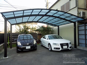 プラチナステンのフレームとポリカーボネート(トーメイマット)の屋根が、ご自宅の外観とマッチして、違和感のないお仕上がりでございますね。2台のお車をゆったり駐車することができ、お車の汚れや傷みを防ぐことができます。雨の日の乗り降りもスムーズになり、いつでもお車を快適にご使用頂けるものと存じます。今後も、エクステリアの施工を通してお客様に笑顔をお届け出来ますよう、日々精進して参ります。また機会がございましたら、是非エクスショップにご用命頂きますよう宜しくお願い致します。