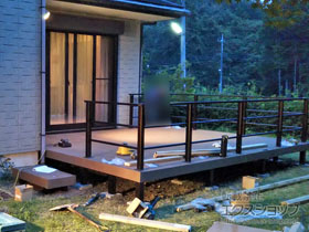 前回弊社で玄関ドアの工事をさせて頂き、この度もリウッドデッキ 200の施工のご依頼を頂きまして、誠に有り難うございます。リウッドを利用したウッドデッキは、木の風合いを感じる温かみがあり、見ているだけでも穏やかな時間の流れを感じますね。段差なくお部屋から繋がる事で、窓を開けばまるで外までリビングが広がっているかのように、開放感を感じて頂けるのではないでしょうか。これからもお客様のご期待に応えられるよう、スタッフ並びに提携施工店一同、日々精進して参りますので、今後もエクスショップをご愛顧頂きますよう、宜しくお願い申し上げます。