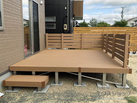 この度は数あるショップの中から、弊社でリウッドデッキ 200の施工のご依頼を頂きまして、誠に有り難うございます。ウォームグレイのお色のウッドデッキがご自宅の外壁のお色と見事に調和し、後付けには感じられない程、綺麗な収まり具合でございますね。お部屋から段差なくサッとにお庭へ出て頂けますので、お庭との距離が近くなり、お洗濯物干しやガーデニング等を気軽に楽しんで頂けるのではないかと存じます。ウッドデッキのテラスでゆったりとした時間をお過ごし頂けましたら幸いでございます。これからもお客様一人一人に合った施工の提案が出来るよう、スタッフ一同日々精進して参りますので、今後もエクスショップをご愛顧頂きますよう、宜しくお願い申し上げます。