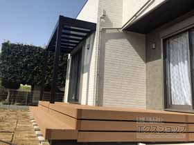 以前カーポートの工事を任せて頂き、この度もリウッドデッキ 200とソラリアF型 テラスタイプの施工のご依頼を頂きまして、誠に有り難うございます。お部屋からフラットに繋がるウッドデッキと、ウッドデッキを覆うように、ご自宅に寄り添うテラス屋根が完成し、温かみを感じるカラーが、お庭のイメージにマッチしておりますね。お部屋から段差がない事で、気軽にウッドデッキへと出て頂け、天候を気にせずにお洗濯物を干して頂けるものと存じます。2か所の掃き出し窓を繋ぐことで、家事効率もアップするのではないでしょうか。これからもお客様満足度100%を目指し、スタッフ一同日々精進して参りますので、今後もエクスショップをご愛顧頂きますよう、宜しくお願い申し上げます。