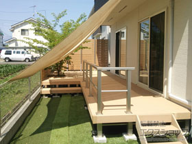 この度は弊社でリウッドデッキ 200とアウターシェードの施工のご依頼を頂きまして、誠に有り難うございます。ご自宅とお庭のスペースに、ウッドデッキが無駄がなく見事に収まりました事、喜ばしく存じます。ご自宅のイメージに自然に馴染む深いグリーンのお色のアウターシェードが、ウッドデッキを覆うように設置された事で、日差しの強い時間帯にも室内の温度上昇を軽減し、目隠し効果もございますので、安心してお過ごし頂ける環境になりましたら幸いでございます。これからもお客様満足度100%を目指し、企業努力を重ねて参りますので、今後もエクスショップにご用命頂きますよう、宜しくお願い申し上げます。