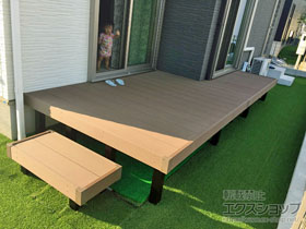 この度は数あるショップの中から、弊社でリウッドデッキ 200の施工のご依頼を頂きまして、誠に有り難うございます。ウォームグレイのお色のウッドデッキがご自宅の外壁のお色と見事に調和し、後付けには感じられない程、綺麗な収まり具合でございますね。お部屋から段差なくサッとにお庭へ出て頂けますので、お庭との距離が近くなり、お洗濯物干しやガーデニング等を気軽に楽しんで頂けるのではないかと存じます。ウッドデッキのテラスでゆったりとした時間をお過ごし頂けましたら幸いでございます。これからもお客様一人一人に合った施工の提案が出来るよう、スタッフ一同日々精進して参りますので、今後もエクスショップをご愛顧頂きますよう、宜しくお願い申し上げます。