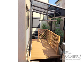 以前カーポートの工事を任せて頂き、この度もリウッドデッキ 200とソラリアF型 テラスタイプの施工のご依頼を頂きまして、誠に有り難うございます。お部屋からフラットに繋がるウッドデッキと、ウッドデッキを覆うように、ご自宅に寄り添うテラス屋根が完成し、温かみを感じるカラーが、お庭のイメージにマッチしておりますね。お部屋から段差がない事で、気軽にウッドデッキへと出て頂け、天候を気にせずにお洗濯物を干して頂けるものと存じます。2か所の掃き出し窓を繋ぐことで、家事効率もアップするのではないでしょうか。これからもお客様満足度100%を目指し、スタッフ一同日々精進して参りますので、今後もエクスショップをご愛顧頂きますよう、宜しくお願い申し上げます。