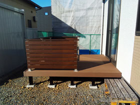 デッキのサンプルをいただいてから色を決めさせて頂きました。リビングから繋がるウッドデッキなのでリビングのフローリングと似た色に出来て違和感なく満足しています。
