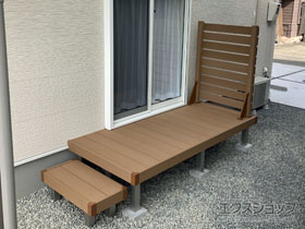 この度は弊社でリウッドデッキ 200の施工のご依頼を頂きまして、誠に有り難うございます。ご自宅の角のスペースに、ウッドデッキが見事に収まりました事、嬉しく存じます。ウォームグレイのお色がご自宅のイメージにマッチしておりますね。段差なく外と繋がる事で、お部屋から気軽にお庭へと出て頂け、涼しい季節にはゆっくりと日向ぼっこをして頂けるものと存じます。ワンちゃんも思わず大あくびしていますね。ウッドデッキのテラスでワンちゃんと一緒にゆったりとした時間をお過ごし頂けますと幸いでございます。これからも業界最安値を目指し、企業努力を重ねて参りますので、今後もエクスショップをご愛顧頂きますよう、宜しくお願い申し上げます。