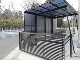 既存のゲートともデザインがうまくマッチして、とても満足しています。但し、そのデザイン性のため、屋根の傾斜はかなり水平に近く、雨水が完全に流れきらないで屋根全面に玉状に残ってしまい、乾いた後に丸いシミになってしまうのは残念でした。 片持ちタイプとしては現状では一番強いモデルなのと、エクスショップさんの台風保証があるので、安心かと思っています。