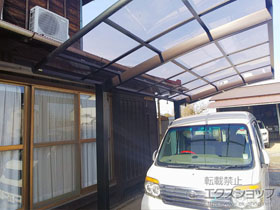 この度は、ネスカRの施工をエクスショップにお任せ下さり、誠にありがとうございます。オータムブラウンの柱とクリアマットS・すりガラス調の屋根材の組み合わせで、高級感のあるお仕上がりとなりましたね。有効高が2,800mmあり、高さのある機器も十分に守ってくれるものと存じます。熱線吸収ポリカーボネートの下では、4〜5℃温度が下がるとされていますので、屋根下を様々な用途でご活用頂けますと幸いです。今後も、安心してお任せ頂けるよう精進して参りますので、また機会がございましたら是非弊社にご用命下さいませ。心よりお待ち致しております。