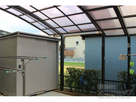 この度は、ネスカRの施工をエクスショップにお任せ下さり、誠にありがとうございます。オータムブラウンの柱とクリアマットS・すりガラス調の屋根材の組み合わせで、高級感のあるお仕上がりとなりましたね。有効高が2,800mmあり、高さのある機器も十分に守ってくれるものと存じます。熱線吸収ポリカーボネートの下では、4〜5℃温度が下がるとされていますので、屋根下を様々な用途でご活用頂けますと幸いです。今後も、安心してお任せ頂けるよう精進して参りますので、また機会がございましたら是非弊社にご用命下さいませ。心よりお待ち致しております。