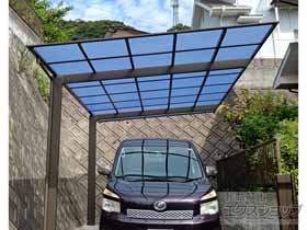 この度は、ネスカFの施工をエクスショップにお任せ下さり、誠にありがとうございます。ブラックの柱とブルーマットS・すりガラス調の屋根材の組み合わせが、重厚感があり素敵なお仕上がりですね。熱線吸収ポリカーボネートの下では、4〜5℃温度が下がるとされています。大切なお車を汚れや劣化から守りながらも、車内温度の不快感も解消してくれますので、この先長くご愛用頂けますと幸いです。今後も、安心してお任せ頂けるよう精進して参りますので、また機会がございましたら是非弊社にご用命下さいませ。心よりお待ち致しております。