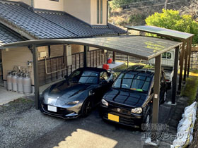 車が汚れず2台並べられることにとても満足しております。 施工前にして頂いたカーポートの色のアドバイスなどのおかげで家と見比べてカーポートが目立つということもなく落ち着いた印象でとても気に入っております。