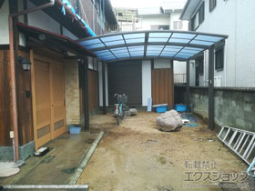 車が少し大きいので住宅に隣接する駐車場の一角に施工して頂きました。一台用のカーポートとしては少し余裕があり乗り降りが楽で満足しています。