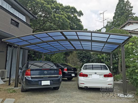 この度は、ネスカR (ラウンドスタイル) ワイドおよび、ネスカR (ラウンドスタイル) の施工をエクスショップにお任せ下さり、誠にありがとうございます。2か所にカーポートが設置され、屋根のあるスペースが増える事で、敷地を有効的に活用いただけるものと存じます。熱線吸収ポリカーボネートの下では、4〜5℃温度が下がるとされていますので、作業等でもぜひご活用いただけますと幸いです。エクスショップでは、暮らしを豊かにするエクステリア商品を多数取り揃えておりますので、また機会がございましたら是非弊社にご用命下さいませ。心よりお待ち致しております。