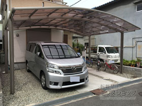 柱が他のメーカーより高く、ミニバンでもロング柱にしなくても標準柱でいいのでよかったです。その分、熱線吸収ポリカにしました。屋根下は暗くなりますが、遮熱効果が期待できます。