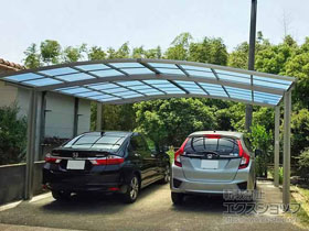 この度は、ネスカR (ラウンドスタイル) ワイドおよび、ネスカR (ラウンドスタイル) の施工をエクスショップにお任せ下さり、誠にありがとうございます。2か所にカーポートが設置され、屋根のあるスペースが増える事で、敷地を有効的に活用いただけるものと存じます。熱線吸収ポリカーボネートの下では、4〜5℃温度が下がるとされていますので、作業等でもぜひご活用いただけますと幸いです。エクスショップでは、暮らしを豊かにするエクステリア商品を多数取り揃えておりますので、また機会がございましたら是非弊社にご用命下さいませ。心よりお待ち致しております。