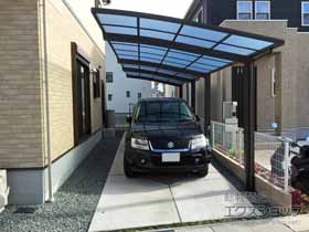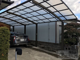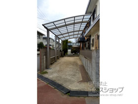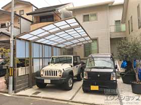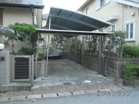 この度は、カーポートの施工をご依頼頂きまして、誠に有り難うございます。すらっと伸びたスマートなシルエットが美しい縦連棟のカーポートが綺麗に納まり、スタイリッシュなお仕上がりでございますね。熱線吸収ポリカーボネート(クリアマットS・すりガラス調)の屋根材が、雨風だけではなく、太陽光の紫外線や熱を遮り、一年を通して快適にご使用頂けるものと存じます。今後も、常に、お客様のご希望にかなった完成を目指し、努力して参ります。また機会がございましたら、是非エクスショップにご用命頂きますよう宜しくお願い致します。