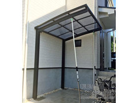 ネスカRミニの施工をエクスショップにお任せ下さり、誠にありがとうございます。シャイングレーの柱とクリアブラウンの屋根材の組み合わせで、落ち着きと高級感のある、素敵なお仕上がりとなりましたね。大切なバイクを汚れや劣化から守りながら、防犯面でもお役立て頂くことができ、快適にお使い頂けておりましたら幸いです。エクスショップでは、暮らしを豊かにするエクステリア商品を多数取り揃えておりますので、また機会がございましたら是非弊社にご用命下さいませ。心よりお待ち致しております。