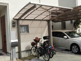 ネスカRミニ (ラウンドスタイル) の施工をご依頼頂きまして、誠に有り難うございます。真っ白な外壁と、オータムブラウンのフレームとのコントラストが大変美しいですね。ご自宅の外観にメリハリが生まれ、引き締まった印象を受けます。自転車を使われる頻度が高いと、カバーを掛ける作業は大変ですね。熱線吸収ポリカーボネート(クリアマットS・すりガラス調)の屋根ができ、雨だけでなく、紫外線からも自転車を守ります。今後も、常に、お客様のご希望にかなった完成を目指し、努力して参ります。また機会がございましたら、是非エクスショップにご用命頂きますよう宜しくお願い致します。