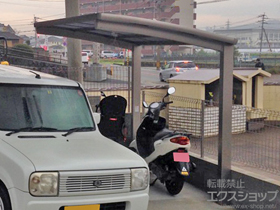 ネスカRミニの施工をエクスショップにお任せ下さり、誠にありがとうございます。シャイングレーの柱とクリアブラウンの屋根材の組み合わせで、落ち着きと高級感のある、素敵なお仕上がりとなりましたね。大切なバイクを汚れや劣化から守りながら、防犯面でもお役立て頂くことができ、快適にお使い頂けておりましたら幸いです。エクスショップでは、暮らしを豊かにするエクステリア商品を多数取り揃えておりますので、また機会がございましたら是非弊社にご用命下さいませ。心よりお待ち致しております。