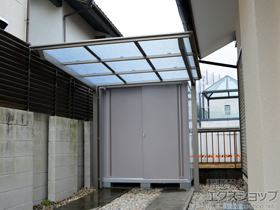 自転車置き場・ゴミ置き場の屋根として選択。 豪華さや派手さは無いものの、ストレートタイプの傾斜が少ないのでスマートな印象を受ける形状。 隣接地への雪落も軽減できそうです。その分、除雪が必要になりそうですが。