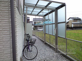 フーゴF 独立テラスタイプが綺麗に納まりましたこと、私どもも大変嬉しく存じます。既存フェンスとの相性もよく、すっきりしたお仕上がりです。外壁に固定する必要のない独立タイプですので、設置する場所を選ばず、使い勝手の良いサイクルポートが完成したものと存じます。今後も、エクステリアの施工を通してお客様に笑顔をお届け出来ますよう、日々精進して参ります。また機会がございましたら、是非エクスショップにご用命頂きますよう宜しくお願い致します。