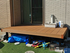 洗濯物を干す場所に、掃き出し窓からウッドデッキを設置し、毎日の洗濯作業がとても楽になりました。工事も3時間程度で終わりましたし、とても良い商品だと思います。