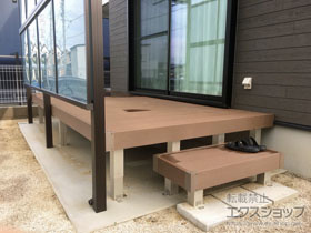 この度は、マージウッドデッキの施工をエクスショップにお任せ下さり、誠にありがとうございます。落ち着きのあるレッドウッドのカラーが、ご自宅の外観ともマッチしており素敵なお仕上がりとなりましたね。室内と段差のないウッドデッキが完成し、出入りもスムーズにして頂けるものと存じます。お気に召して頂き、ご家族憩いの場としてこの先長くご愛用頂けますと幸いです。エクスショップでは、暮らしを豊かにするエクステリア商品を多数取り揃えておりますので、また機会がございましたら是非弊社にご用命下さいませ。心よりお待ち致しております。