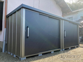 物置の組み立てと設置を、エクスショップにご用命頂きまして、誠に有り難うございます。重厚感のあるお色が、お庭にしっくりと馴染んでいます。収納力が高く、扉2枚分を開閉することができる物置は、大きなお荷物の出し入れもスムーズですね。お気に召して頂き、長くご愛用頂けましたら幸いです。これからも、お客様の笑顔の為に日々努力して参りますので、また、機会がございましたら、是非エクスショップをご利用頂きますよう、宜しくお願い致します。