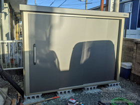 この度は、物置の施工をご依頼頂き、誠に有難うございます。収納力のある大型の物置ですので、様々な用途にご活用頂けるものと存じます。耐久性に優れ、大変機能的な商品でございますので、お気に召して頂き、永くご愛用頂けますと幸いでございます。今後も、常に、お客様のご希望にかなった完成を目指し、努力して参ります。また機会がございましたら、是非エクスショップにご用命頂きますよう宜しくお願い致します。
