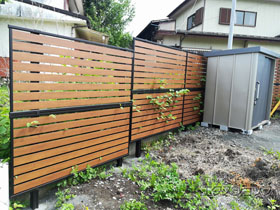 木目調でありとても良い雰囲気のフェンスでした。なお、フェンスの隙間から向こう側がけっこう透けて見えるため、完全目隠しタイプにしておいたらよかったと思いました。