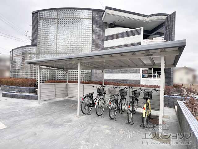 弊社でヨド自転車置場 YOKCタイプの施工のご依頼を頂きまして、誠に有り難うございます。プレコートカラー鋼板を使用した耐久性に優れたサイクルポートは、グレーベージュのお色が建物に違和感なく馴染み、スッキリとした収まり具合でございますね。天候を気にせずに自転車・バイクを駐輪して頂け、屋根からの紫外線を遮断するものと存じます。機能性の高いサイクルポートを永くご愛用頂けますと幸いでございます。この度は工事の日程が遅くなり、ご迷惑をお掛けしました事、心よりお詫び申し上げます。今後は出来る限り早く施工が出来るよう、日程調整に努めて参りますので、今後もエクスショップにご用命頂きますよう、宜しくお願い申し上げます。